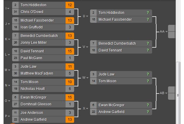 Well, Round 1 voting has closed and there were some upsets. Some surprises. And some expected wins. So take a look at the updated bracket and prepare yourself for Round 2 (which starts Tuesday morning (July 15, 2014)). If you need a moment to remember those we've lost along the way, scroll past the bracket and relish the memories.